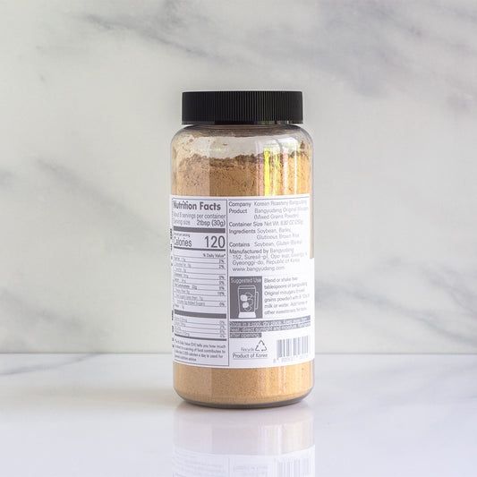 DERMisugaruist ein traditionelles koreanisches Pulver, das aus einer Mischung von Körnern und Samen hergestellt wird. Es ist für seine vielen ernährungsphysiologischen Vorteile und den köstlichen Geschmack von Haselnuss und geröstetem Getreide bekannt und wird bereits von K-Pop-Stars übernommen. Misugaru ist ideal für alle, die eine gesunde Alternative zu zuckerhaltigen Getränken oder Kaffee suchen. Es ist reich an Proteinen, Vitaminen und Mineralien. Unsere Misugaru sindHergestellt in Korea von der Rösterei Bangyudang aus 100 % koreanischen Zutaten, was Ihnen ein authentisches Produkt von bester Qualität garantiert.