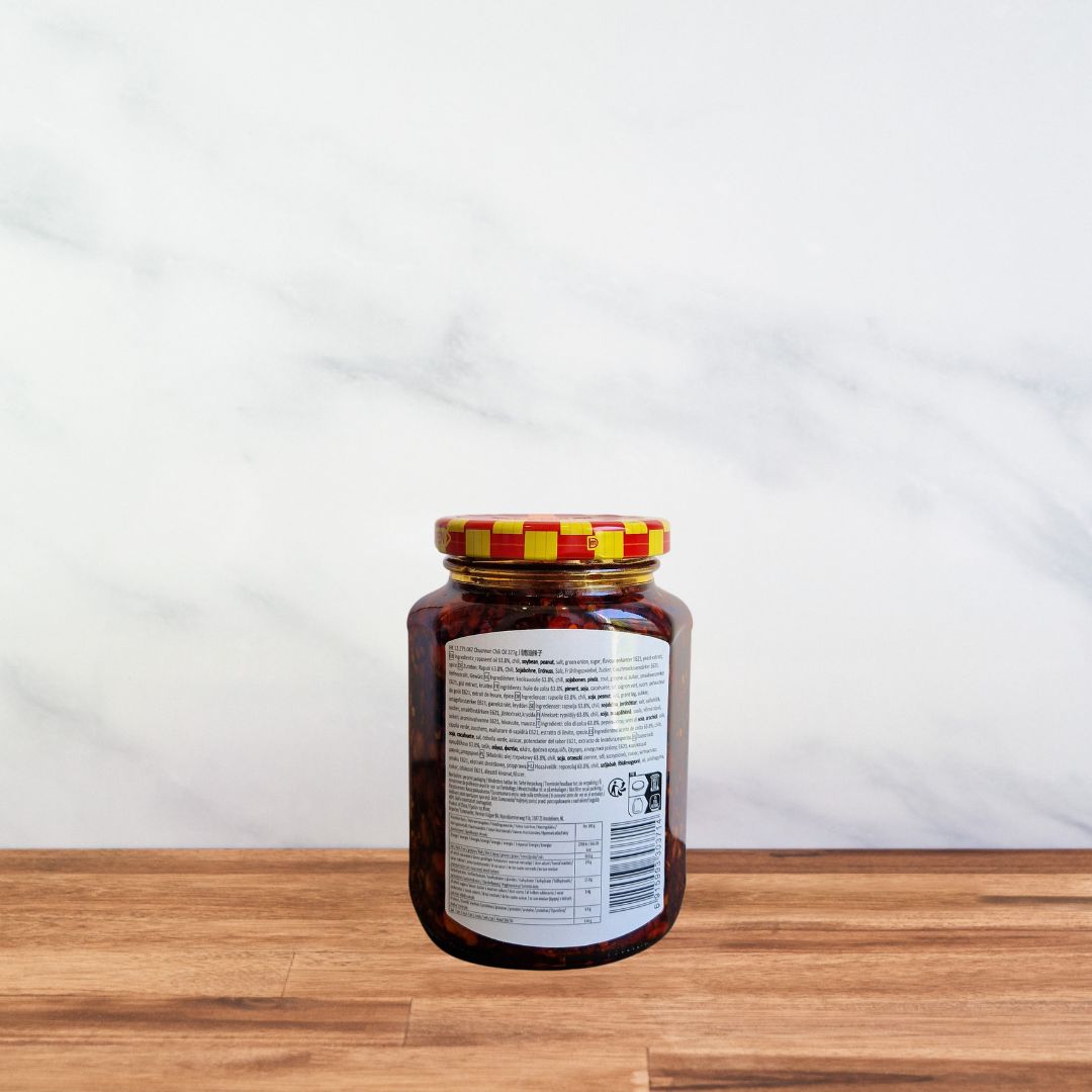 Dieses Chiliöl aus Sichuan vereint die intensive Schärfe von Chilischoten mit der Köstlichkeit eines aromatischen Öls und dem knackigen Geschmack von Erdnüssen. Seine reichhaltige Textur und sein intensiver Geschmack machen es zu einem unverzichtbaren Gewürz der chinesischen und Fusionsküche. Die neue 327-g-Packung ist ideal für häufiges Kochen.