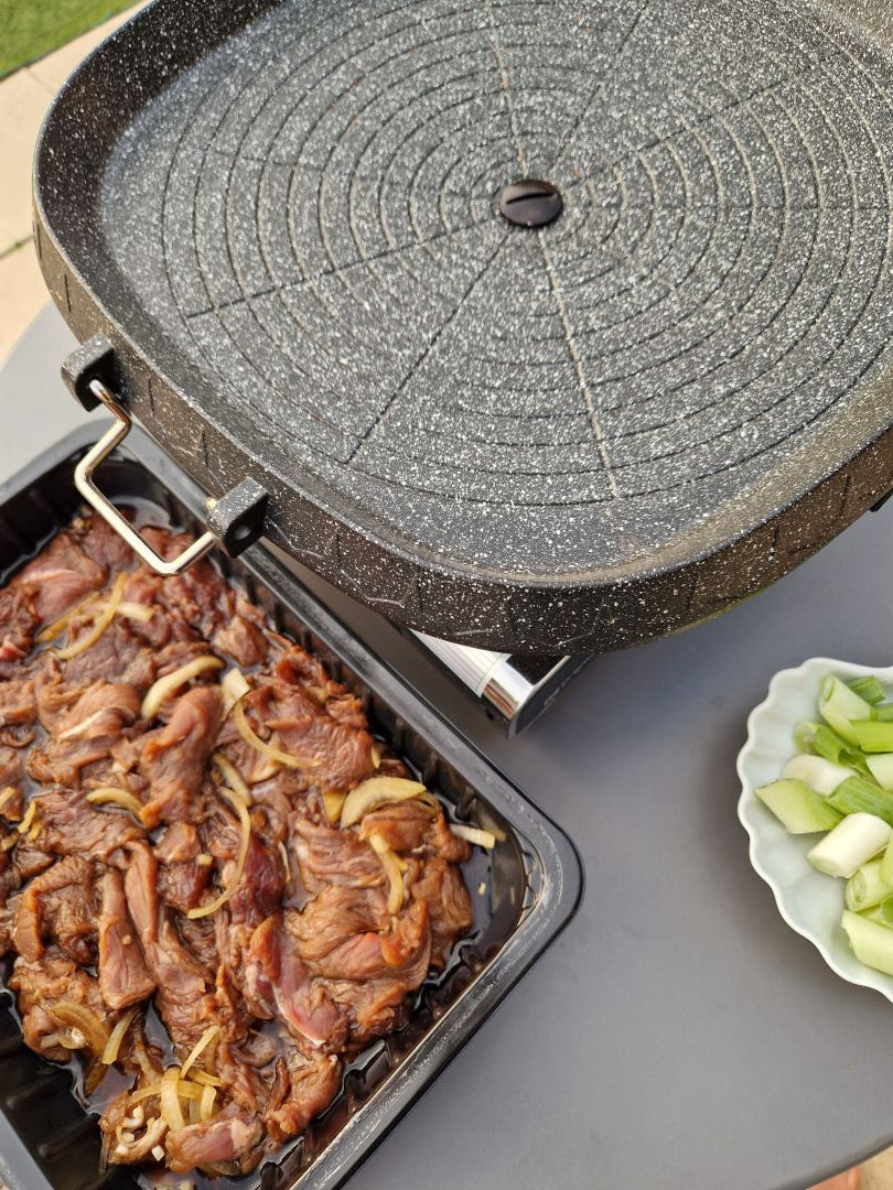 Holen Sie sich die Wärme eines koreanischen Barbecues nach Hause mit dieser 32 cm großen, platinbeschichteten Aluminiumgrillplatte . Es wurde für reibungsloses Kochen entwickelt und eignet sich perfekt zum einfachen Grillen von Fleisch, Fisch oder Gemüse. Dank des integrierten Ölablaufsystems ist gesünderes Kochen mit weniger Rauch und weniger Restfett möglich. Ein Muss für gelungene koreanische Mahlzeiten zu Hause.